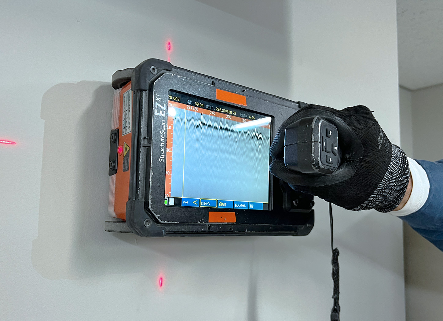 RCレーダーでは判別が難しいCD管や、コンクリート内部を鮮明に可視化できるため、既存建物の改修や耐震診断の際に有効な調査手法となります。